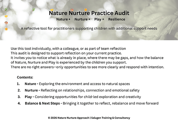 The Nature Nurture Audit Tool is also part of the wider Nature Nurture in Practice approach and training programme. It can be used as a standalone tool or as a starting point for further professional development.